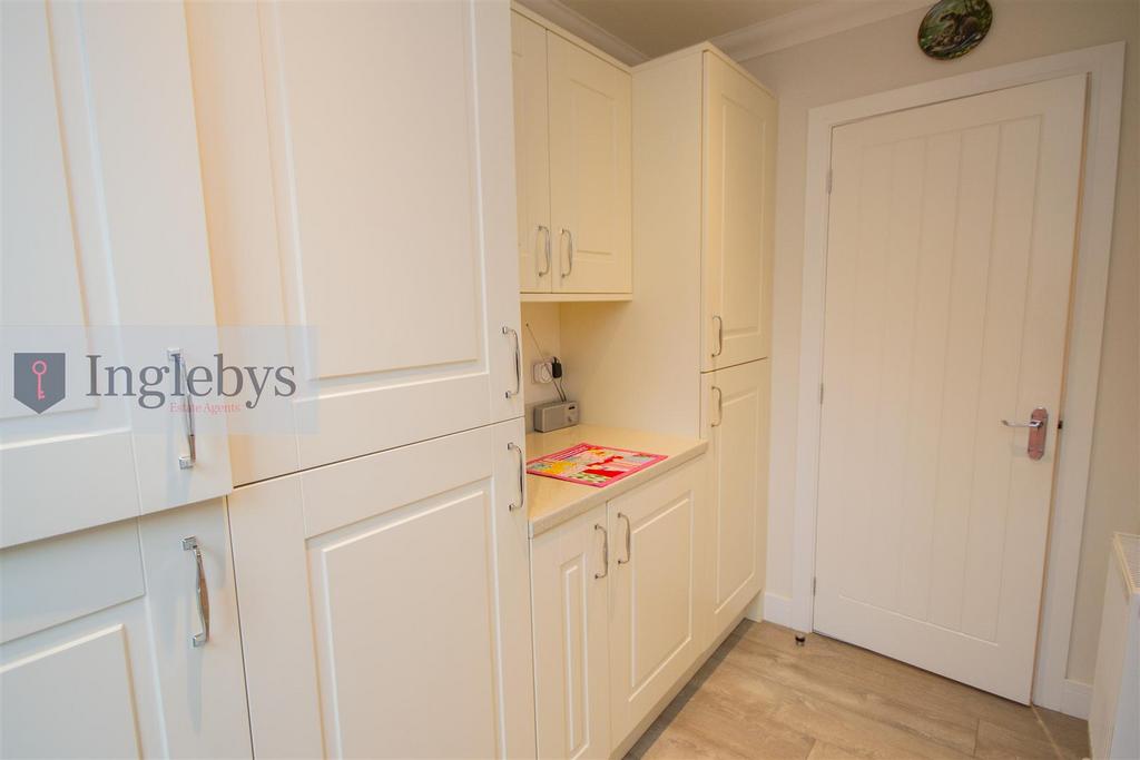 Utility - 2.46m x 1.37m (8'0" x 4'5") - A range of storage units. Integrated fridge freezer and washing machine. Laminate worktops. Radiator. LED downlights. Door leading to side aspect.