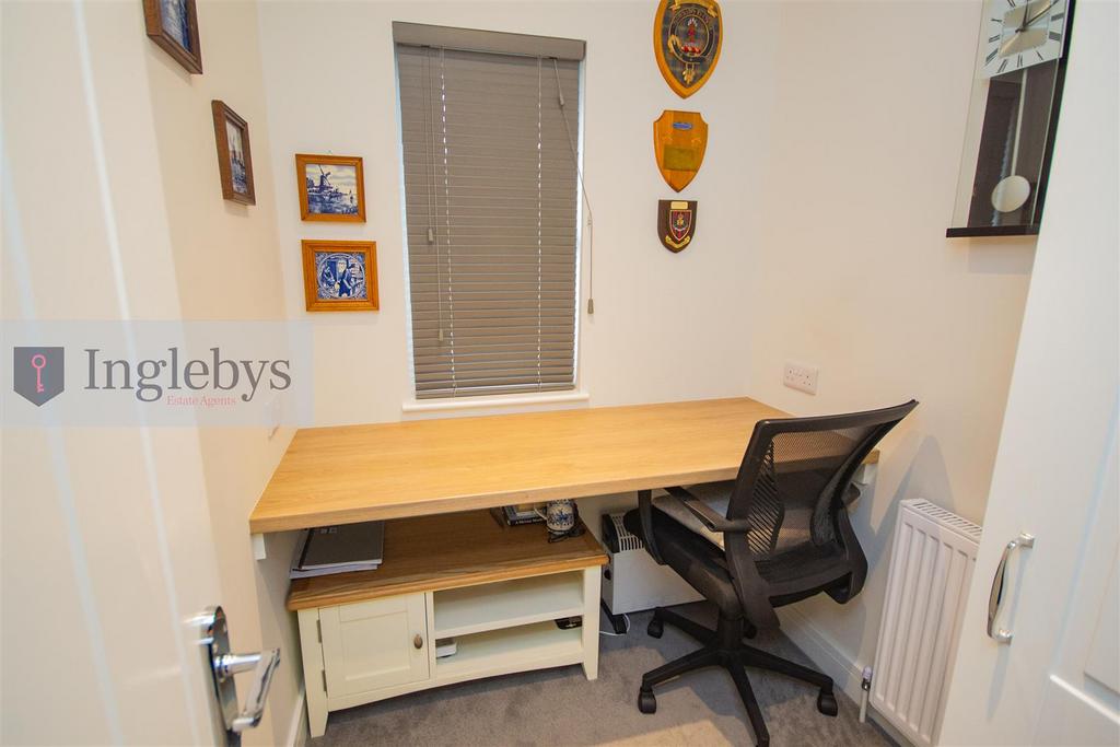 Study - 1.62m x 0.52m (5'3" x 1'8") - uPVC window. Radiator. Carpet flooring. Storage cupboard. LED downlights.