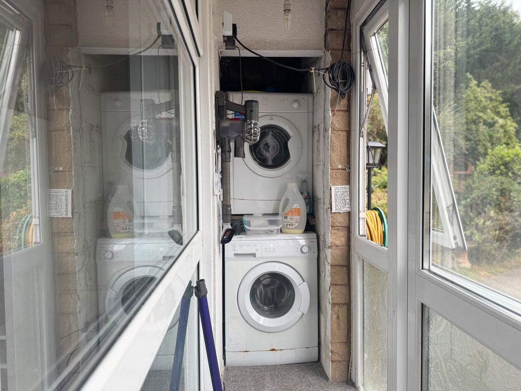Upon entering the property, you are greeted by a practical porch area, thoughtfully designed to accommodate both a washing machine and tumble dryer—ideal for keeping laundry separate from the main living space. Moving into the heart of the home, the spacious lounge immediately impresses with its abundance of natural light, courtesy of a striking floor-to-ceiling window that enhances the room’s bright and airy atmosphere.