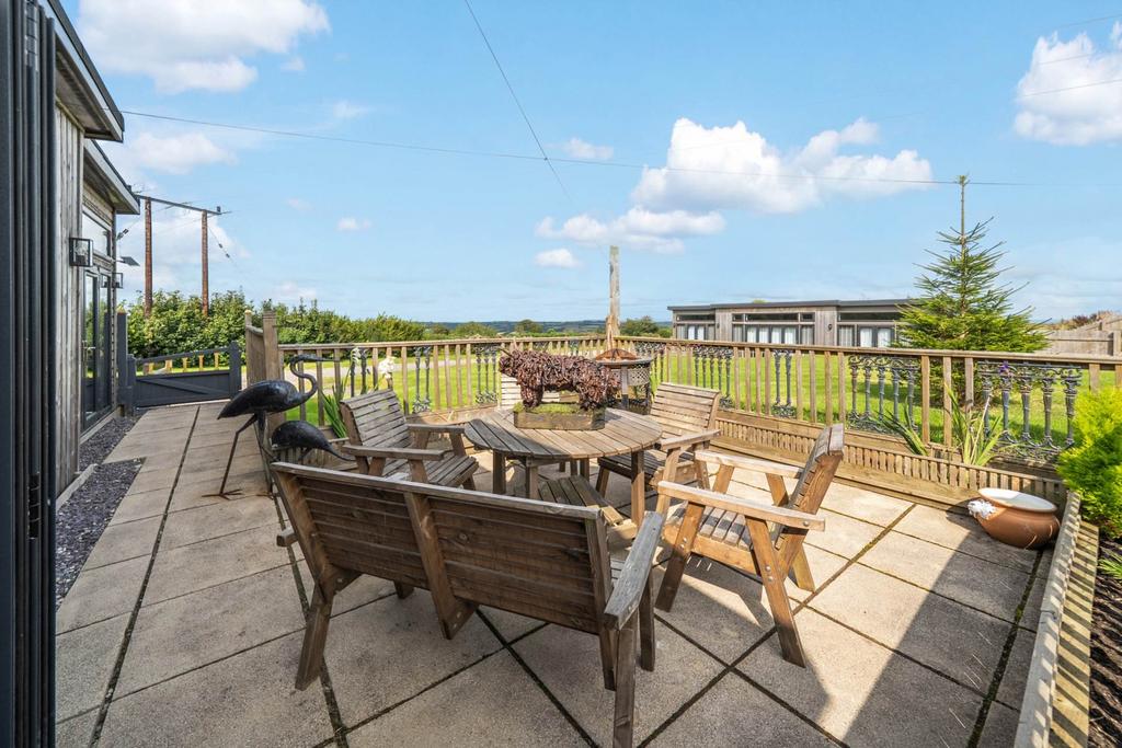 Outside:- The property occupies a generous size plot with open rolling countryside views towards Bodmin moor and Dartmoor. The grounds are fully enclosed with fencing and level access to the front entrance. There is a generous paved patio seating area capturing the daytime and evening sunlight. The paved level pathway continues to the rear where a further generous patio/garden area can be found, making an ideal barbeque and entertaining area. There are three small out buildings which are used as a work shed, storage shed and studio. To the front of the property there are two parking spaces and gated access. At the rear there is also gated access to the fully enclosed paddock ¼ acre approximately ( no animal grazing allowed).