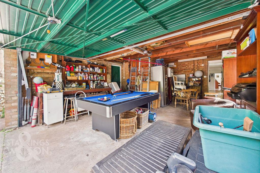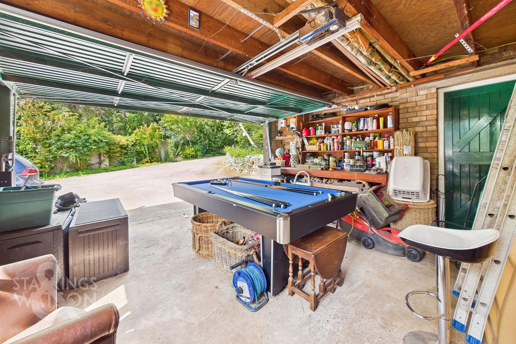 The property can be found at the end of this private road with electric wooden gates opening to a cascading driveway surrounded by mature shrubs and trees leading down to the property's frontage offering an expansive driveway access to the double garage with an adjacent path leading down the side and to the main entrance under an open porch.