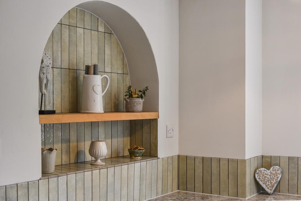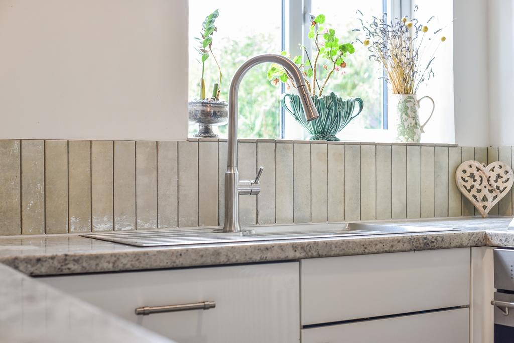 KitchenThe kitchen is neat and well-maintained, offering ample cupboard space and a generous larder for additional storage. It includes a Smeg gas oven, dishwasher, and a sink with drainer.