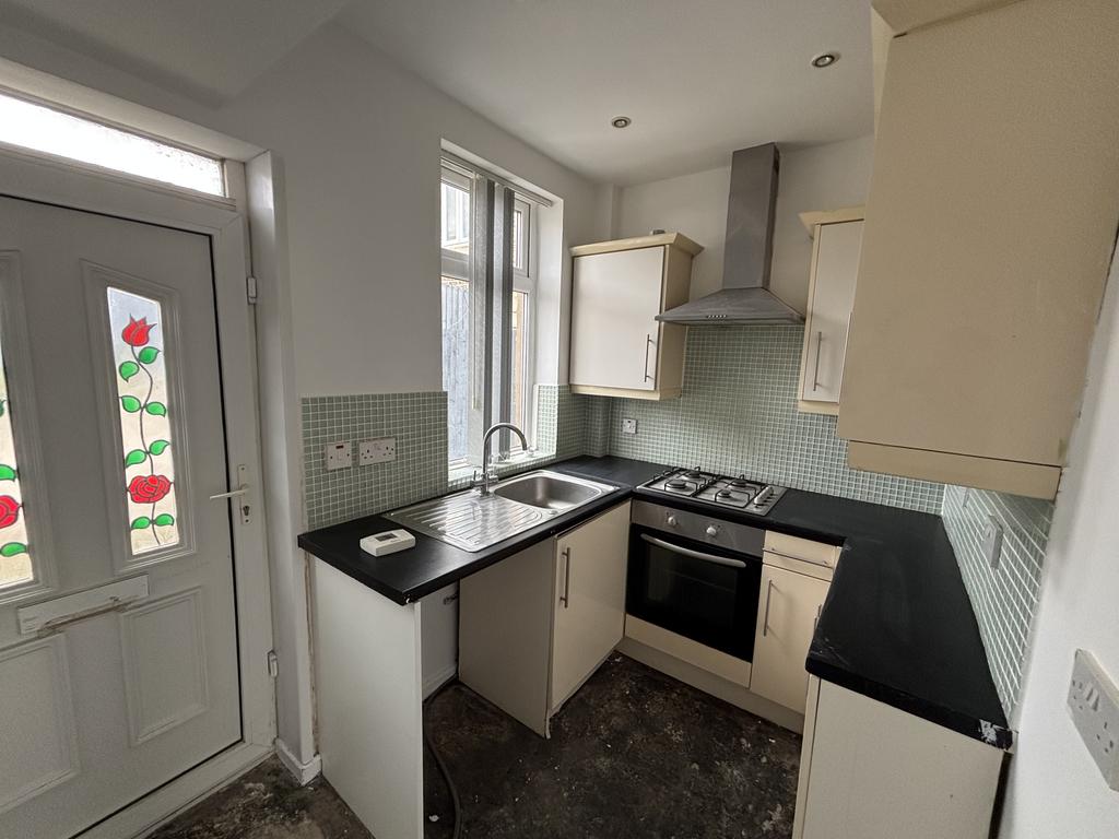 Kitchen (9'5 x 5'10) Fitted base and wall units, stainless steel sink unit with mixer taps, plumbing for washing machine, built in oven, hob and hood. Double glazed window and door to rear.