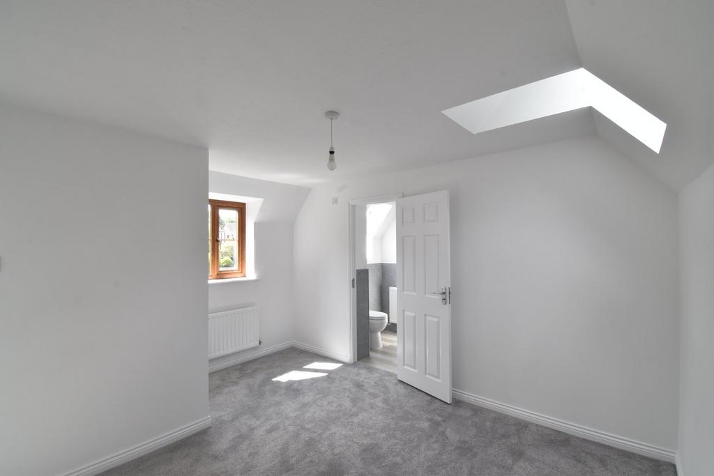 Double Velux window to front. Suite comprising of low level WC, wash hand basin with cupboard and shower with glass screen. Radiator. Extractor.