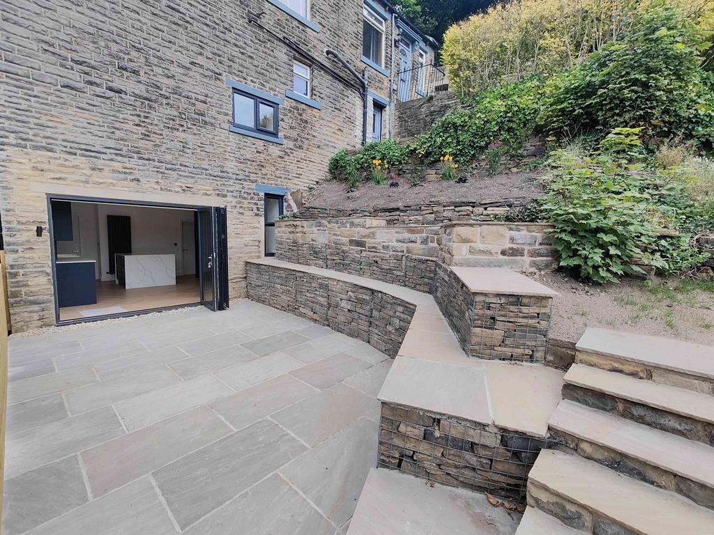 A multi-tier and fully enclosed garden that offers fantastic far reaching views over the Calder Valley. The garden features a patio seating area, two lawned sections and flowerbeds that creates the ideal place to sit back and relax or to have a barbeque. The gardens are enclosed by a wooden fence to increase privacy and security.