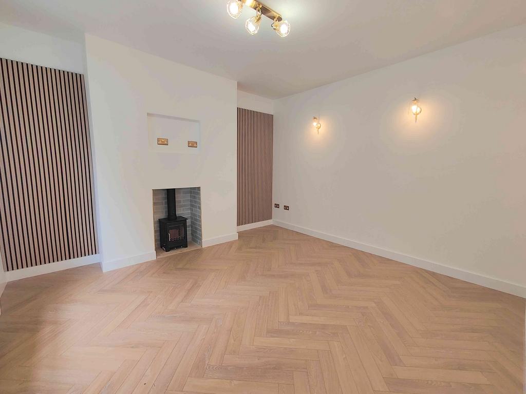 A large and spacious living room that offers the ideal impression from the moment you step inside this charming home. Offered with a wood burning stove, inset into the chimney breast, that creates the ideal central feature, especially when twinned with the modern wood panelling to either side. The room offers plenty of space for a three piece suite along with additional furniture. With a high quality wood laminate floor, wall mounted light fittings, central light fitting, double radiator and a uPVC double glazed window to the front elevation.