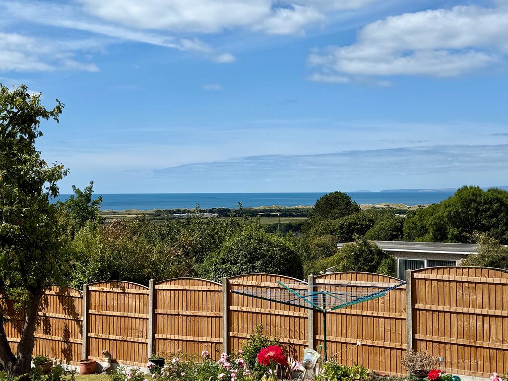 Towards the lower end of the garden lies a productive vegetable plot, while the property’s rear boundary adjoins open fields, providing further coastal views in the distance.