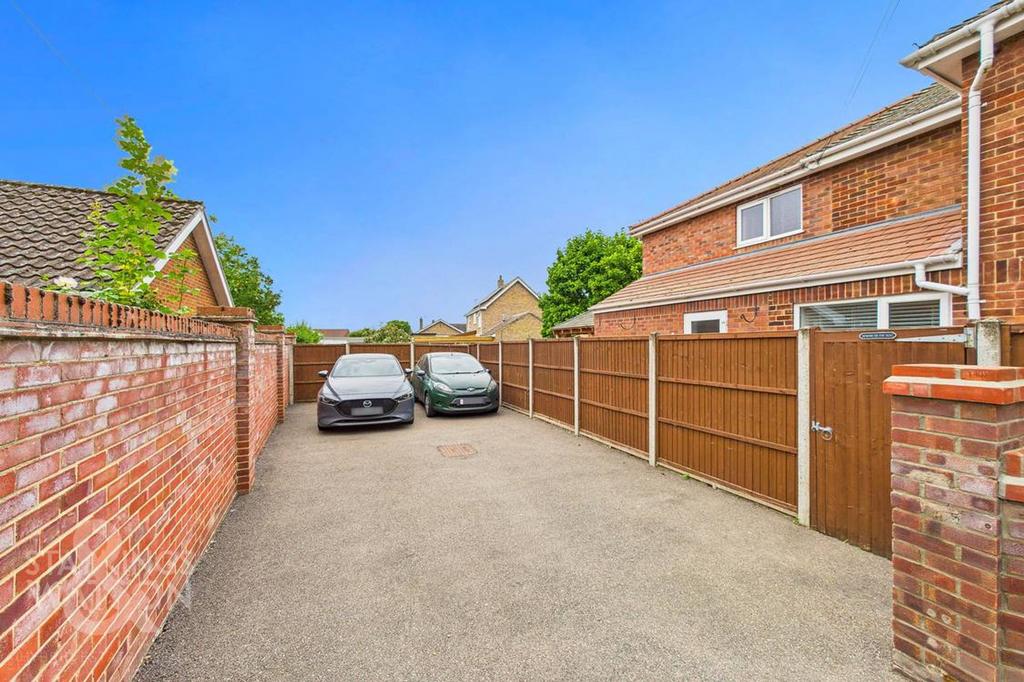 To the front you will find a low level brick wall with hard standing paving leading to the main entrance door. To the side there is a large hard standing driveway providing parking for multiple vehicles off road with a gate to the side garden.