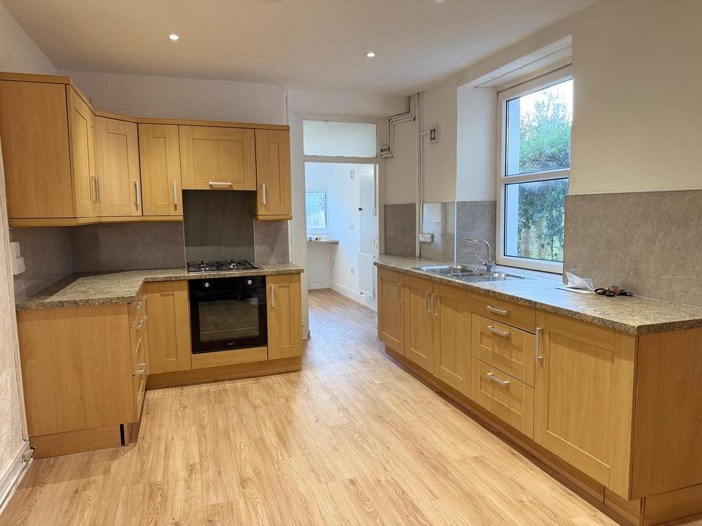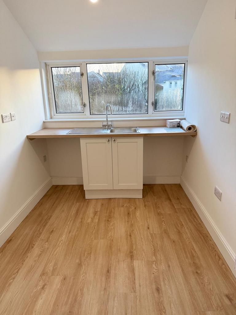 To the rear, the sizable kitchen features contemporary oak-style cabinetry, extensive worktop space, with integrated cooking appliances, An adjacent utility room provides flexibility for laundry, extra storage with pleasant garden views , a rear porch is an ideal storage room setup with its direct access to the outside.