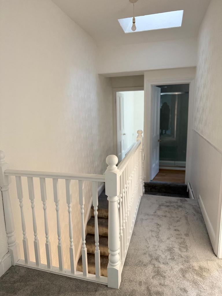 Stepping through the front door, you are welcomed by a fresh, neutral interior palette and modern comforts, all benefitting from recent refurbishment. The generous lounge/dining area features dual-aspect oversized bay windows, ensuring the space is filled with natural light throughout the day. Plush new carpets add warmth and comfort, while the period details—such as detailed ceiling roses and classic carpentry—enhance the home’s charm.