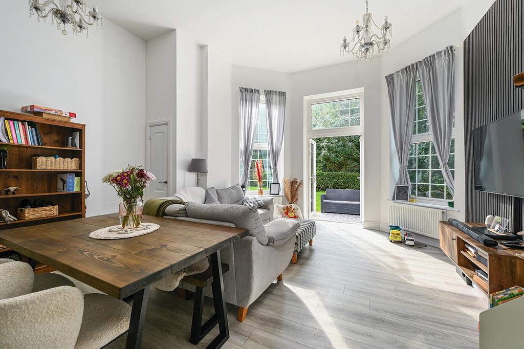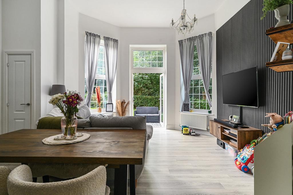 - Double doors opening onto a private terrace with access to communal gardens & woodland