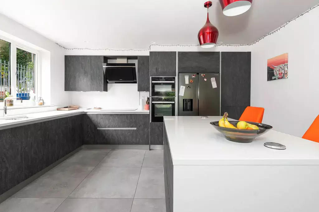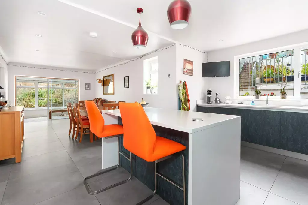 - Stunning open plan dining kitchen with stylish fitted kitchen with island