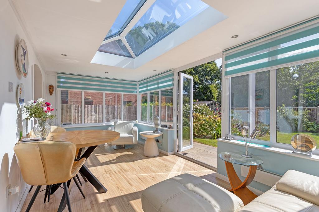 The ground floor boasts an impressive array of large reception rooms, including a spacious living room, separate dining room, study and bright garden room. Combined, these offer versatile spaces well suited to family life, formal entertaining or quiet relaxation. Natural light floods through the entire home, enhancing its sense of space and warmth, while the thoughtful layout ensures a seamless flow between living areas.