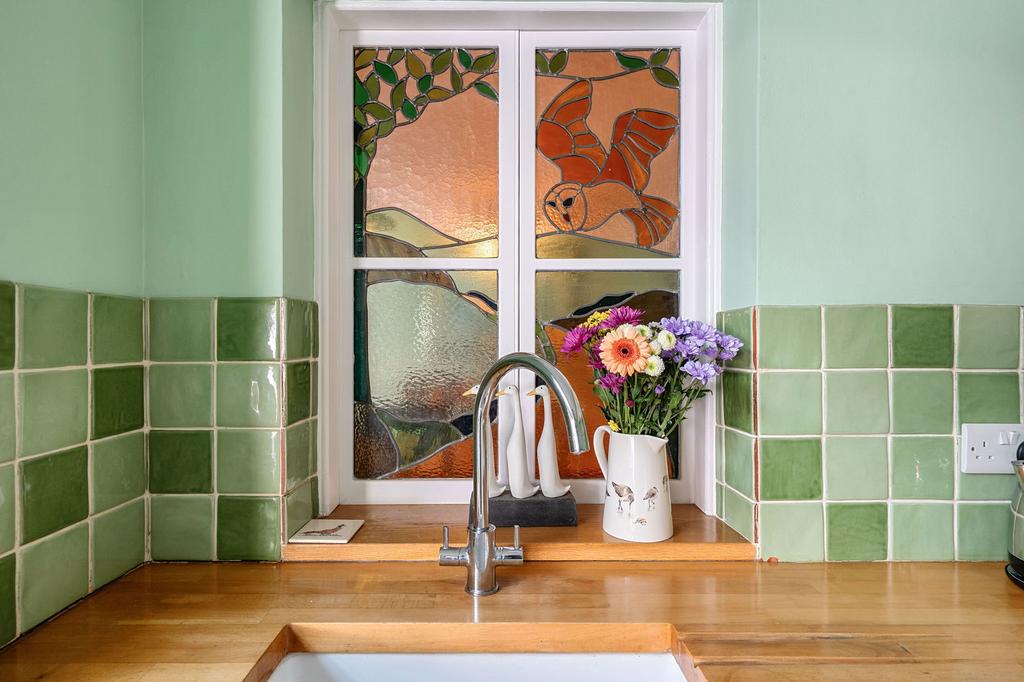 The dining room allows for a large table and additional furniture where you can gather with family and friends for meals and celebrations. There is beautiful stain-glassed window which adds charm and a wooden wine rack has been inset into the fireplace which is delightfully quirky.