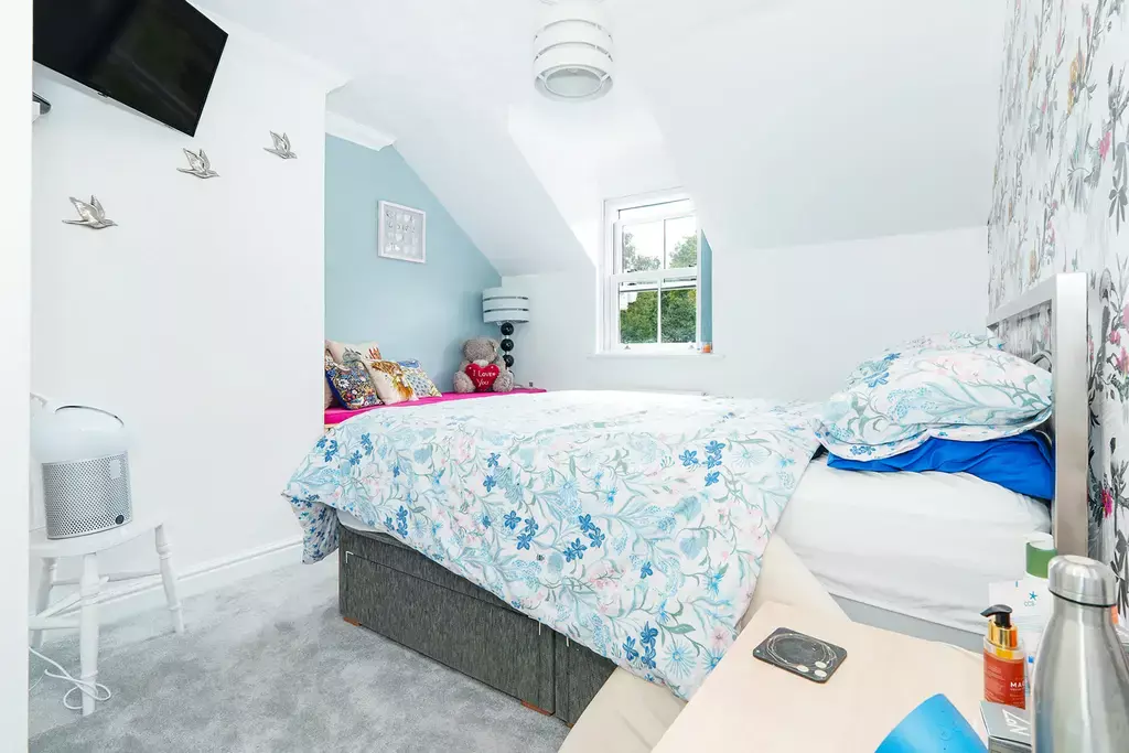 Upstairs, there are three bedrooms, a family bathroom, and a stylish ensuite shower room to the principal bedroom.