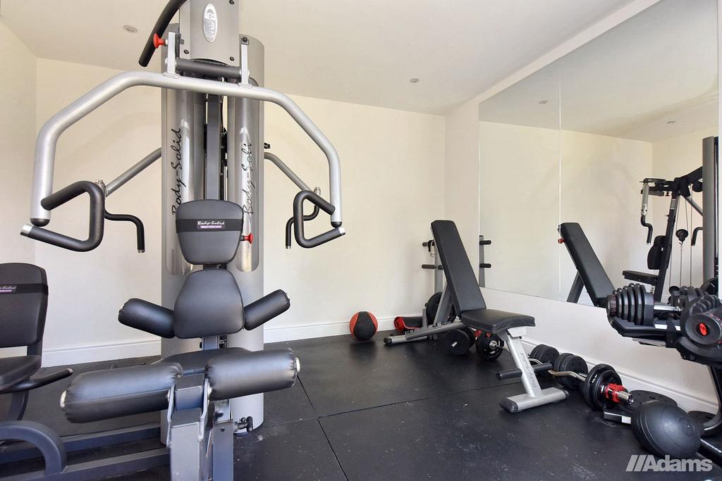 Outside, the property continues to impress. A detached garage with secure store, extensive driveway parking, and a garden room currently used as a gym enhance the practicality of the home. The private landscaped gardens provide a tranquil escape, perfectly complementing the property’s prime position.