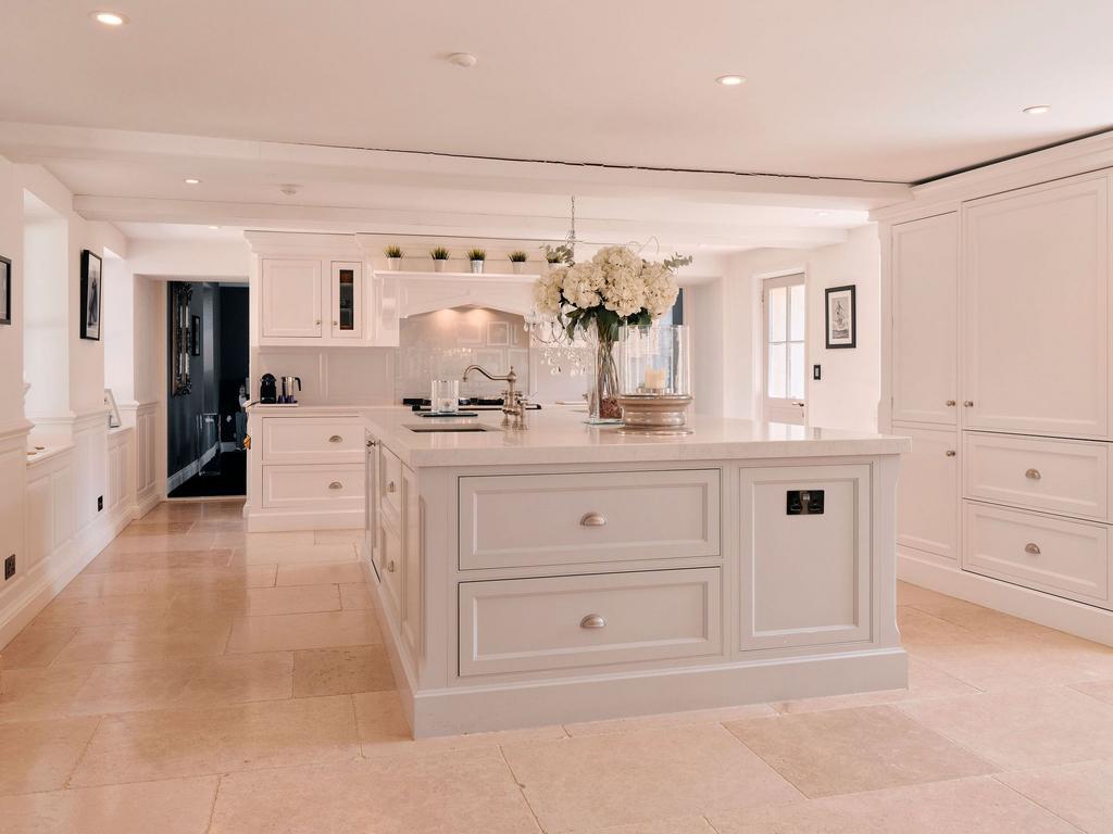 At the heart of the house is a generous family kitchen, perfectly equipped for everyday use, alongside a fully-fitted chef’s kitchen designed for effortless entertaining. The accommodation extends to eight spacious bedrooms and an equal number of beautifully appointed bathrooms, making Holmbury ideal for large families and visiting guests alike. For those seeking further flexibility, a one-bedroom cottage is attached to the main house—ideal for staff, extended family, or independent visitors.
