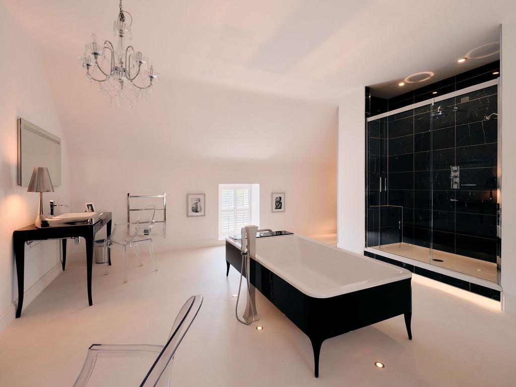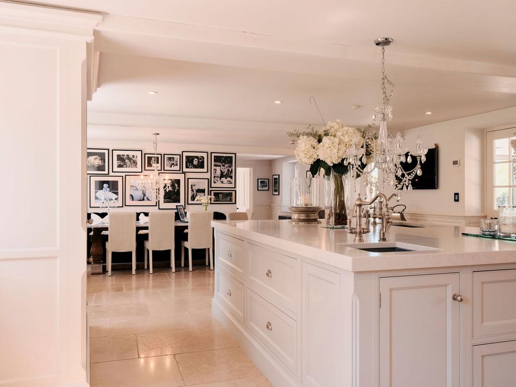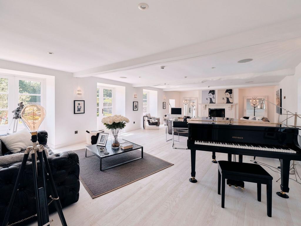Inside, the home has been entirely reimagined with a focus on luxurious modern living, family comfort, and sustainability. An impressive glass and granite extension forms a stunning link between the original house and a converted barn, creating a breathtaking entertaining space that floods with natural light and frames views across the gardens. Throughout the home, a variety of reception rooms provide elegant options for every mood and occasion, from cosy fireside lounges to sleek, modern living areas.