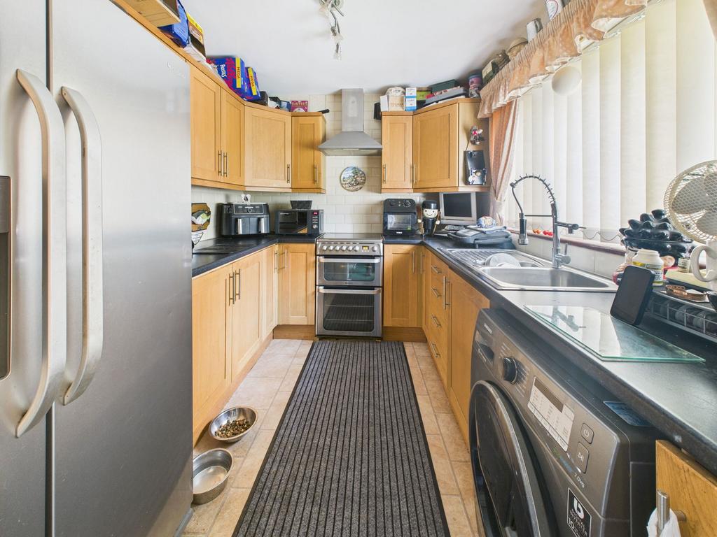 This three bedroom semi-detached property boasts spacious accommodation throughout and includes; front porch and entrance leading through to the well-equipped kitchen fitted with a range of wooden fronted cupboards and drawers both at base and eye level. There is plenty of room for modern appliances including space for a washing machine and a large American fridge/freezer. A spacious living/dining room provides a comfortable living space and room for a large dining table and chairs and the conservatory is a good size, offering flexible living accommodation with a nice outlook onto the garden. A useful storage cupboard in the hallway concludes the ground floor.