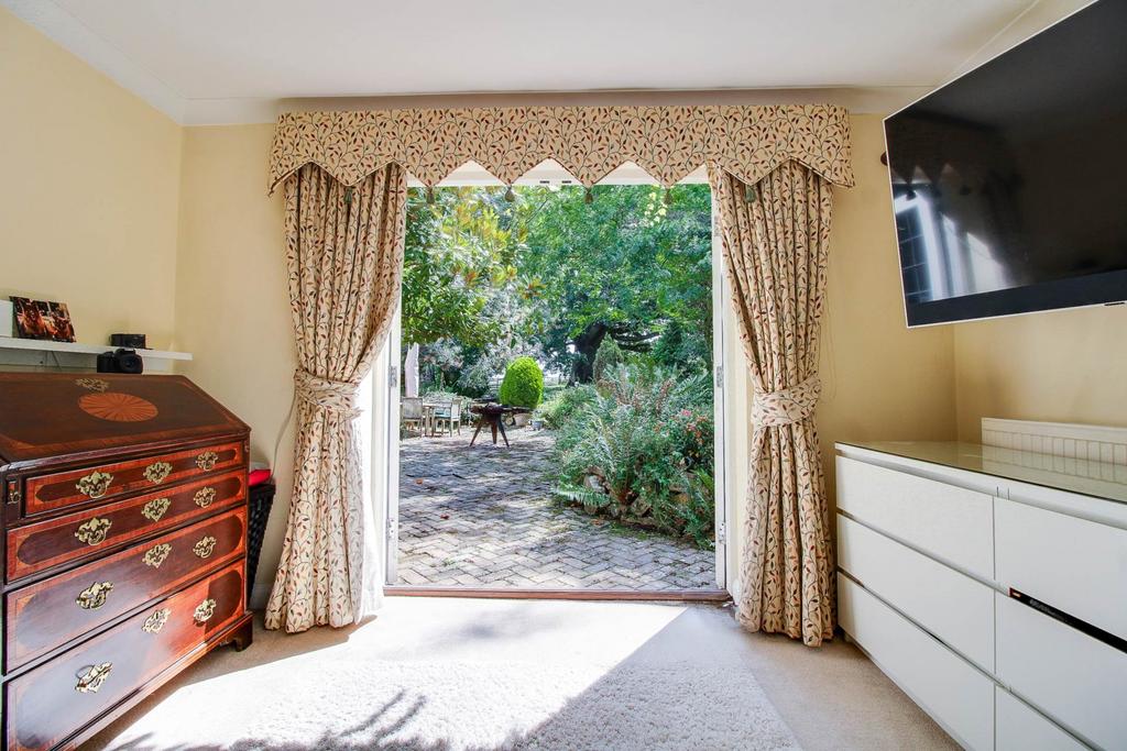 19'8 x 12'4. Beautiful double-aspect room where garden views pour in through the leadlight window and patio doors, creating a tranquil, almost outdoor feel. Opens directly onto the south-facing terrace, perfect for peaceful relaxation or enjoying the garden from dawn to dusk. Features double and single wardrobe cupboards with open shelving.