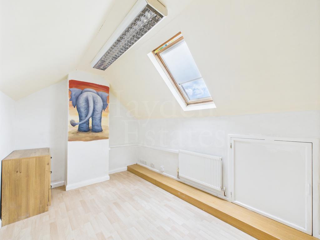 Stunning panoramic views over roof tops via side facing window. Further complimented by roof window. Radiator and inset ceiling spot lights.