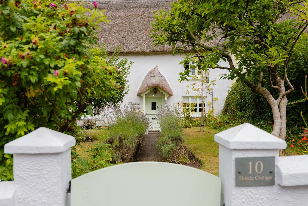 Outside to the front is a lovely garden with central path, this area is mostly laid to lawn with pretty flower and shrub borders. The front porch was rethatched in 2024. To the rear is a beautifully thought out ornamental garden with a feature pond and an array of plants and shrubs. There is a patio seating area and a path leads down to the rear where there is a large cob and stone outbuilding and a gate that leads out to the parking area. Access to the parking area is to the rear of the cottages with a right of way down to the privately owned parking area.