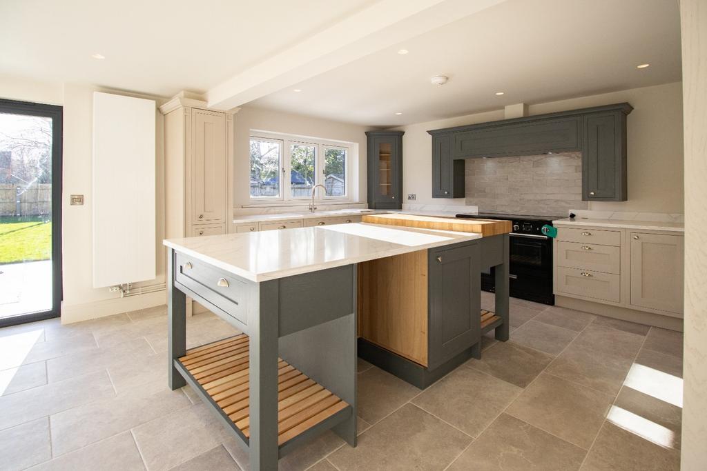 Visitors are welcomed into the impressive entrance hall, which leads directly into the stunning 33ft kitchen/dining/family room. This space is unquestionably the most eye-catching feature in the property, with a handmade kitchen under granite work surfaces and a matching central island, a brand-new Rangemaster oven and a further range of integrated appliances which include two refrigerators, two freezers and a dishwasher. Adjacent to the kitchen is the utility room, which offers space for a washing machine and tumble drier, and also houses the brand-new central heating boiler. The remainder of the room offers plenty of space for a dining table and other furniture, alongside a pair of bi-folding doors which open out on to the newly laid patio.