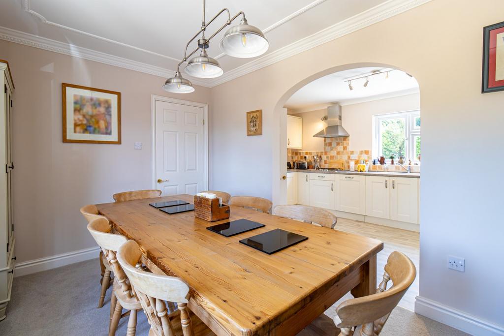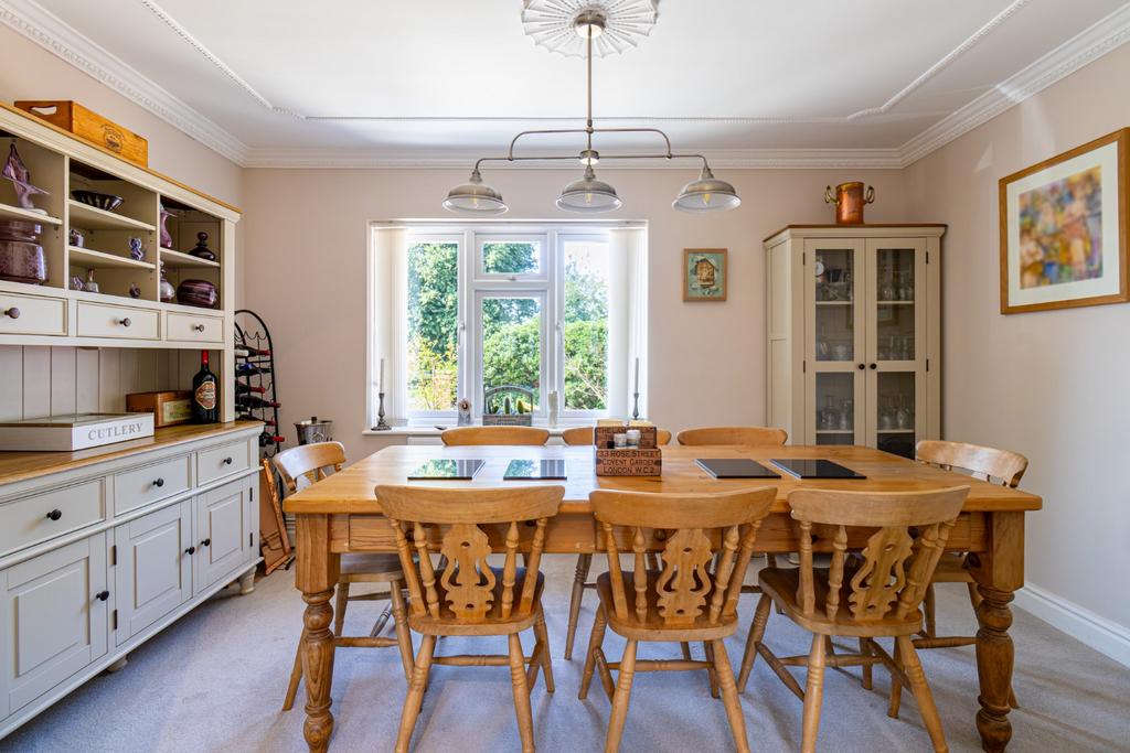 Visitors are welcomed to Magdalen House beneath an entrance canopy, where a partially glazed door opens into the reception hall, with stairs rising to the first floor. The first room encountered is the inviting sitting room, which is a comfortable and welcoming space that overlooks the front of the property. A recently installed marble fireplace with a gas fire forms the main focal point, creating a cosy and elegant atmosphere. Double doors from the living room lead into the delightful garden room, which enjoys a dual-aspect outlook across the rear garden and features French doors opening onto the patio, perfect for blending indoor and outdoor living. On the opposite side of the entrance hall is the wonderful open-plan kitchen/diner, which benefits from views to both the front and rear of the home. This sociable space is ideal for modern family life and entertaining. The kitchen is fitted with a range of modern shaker-style units set beneath fitted work surfaces, and includes a range of integrated appliances which include a 4-ring gas hob, double oven, dishwasher, and refrigerator. Adjacent to the kitchen is a useful utility room offering additional storage and plumbing for a washing machine. Completing the ground floor is a cloakroom WC, a bright conservatory, and a versatile study/ground floor bedroom, ideal for guests, working from home, or multi-generational living.