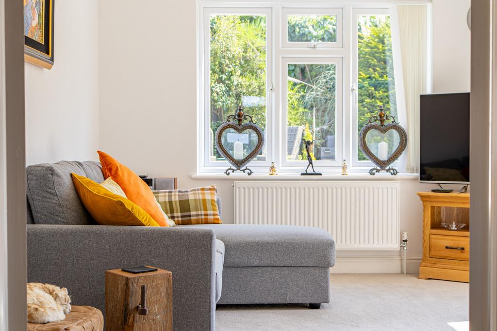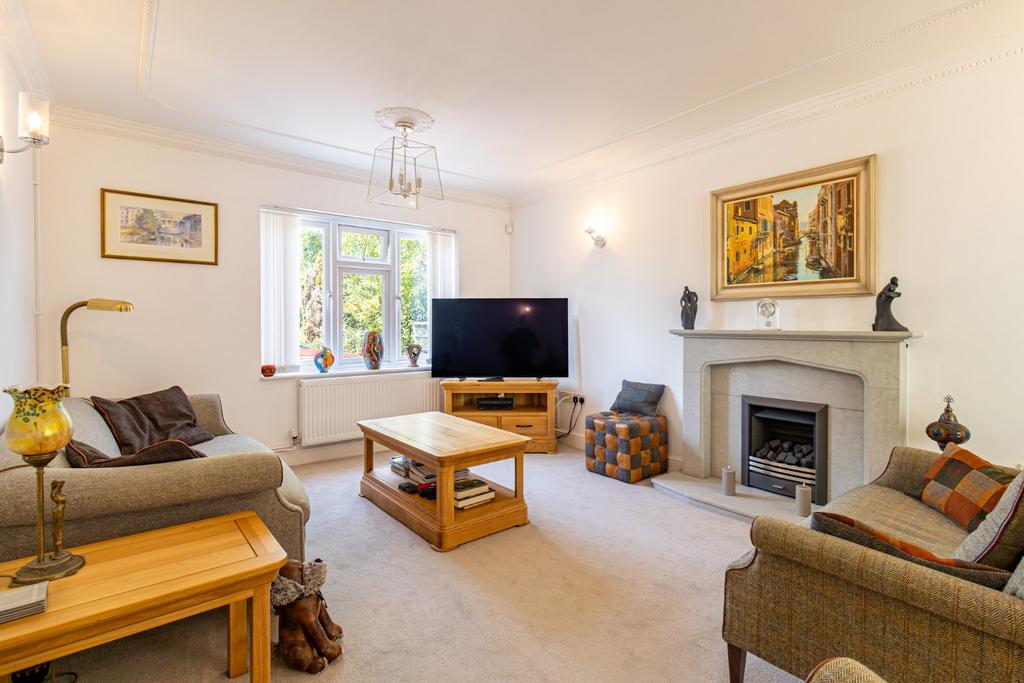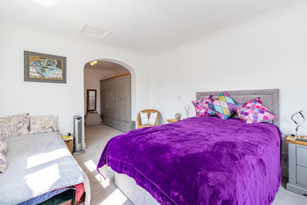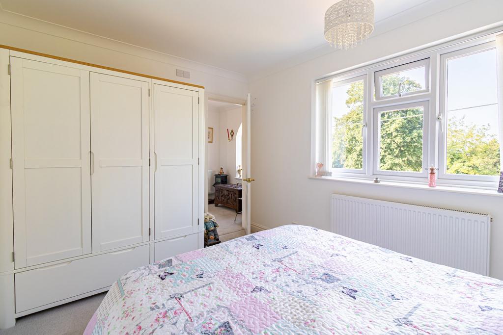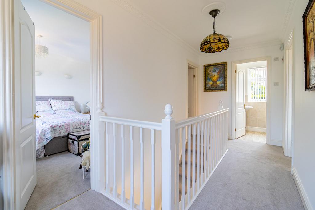 Upstairs, three generously sized double bedrooms are arranged around a bright and spacious landing, which features a stunning stained-glass window offering a pleasant outlook to the front. The master bedroom enjoys the added luxury of a ensuite bathroom and access to a west-facing balcony that boasts lovely views. The dual-aspect guest bedroom includes its own ensuite cloakroom and a large dressing area, while the third bedroom is served by a neatly appointed family shower room, completing the first-floor accommodation.