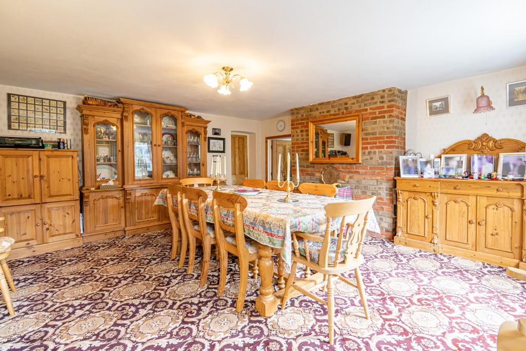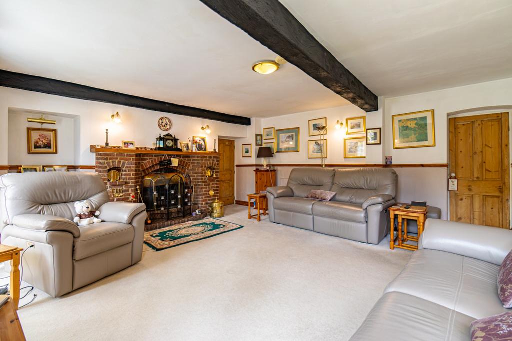 Visitors are welcomed into the impressive reception hall, with a timber staircase rising to the first floor and a built-in coat cupboard. Along the front elevation there are three main reception rooms; the sitting room is a spacious family room with a brick-built fireplace, a beamed ceiling and a bay-window to the front. To the side of the sitting room is the formal dining room, which is also generously proportioned and has a pair of windows to the front. Across the hall from the sitting room is the cosy snug, with a fireplace and bay-window to the front.