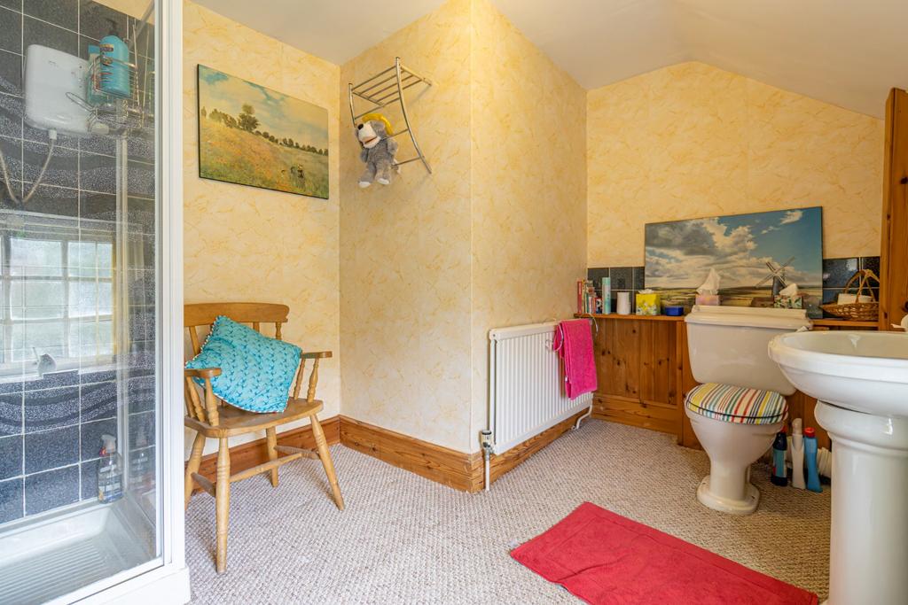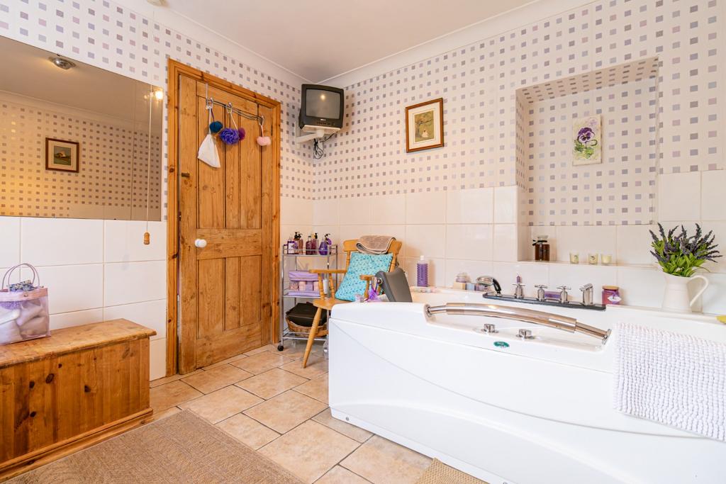 On the other side of the kitchen there is a useful boot room/rear porch, with a door out to the garden and a door into the luxurious ground floor bathroom, which is fitted with a Jacuzzi bath, hand basin and WC.