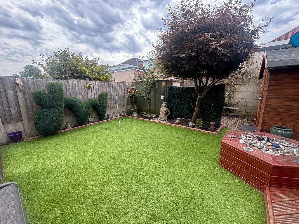 The rear garden is a great outdoor space, featuring a decking area ideal for entertaining, artificial grass for year-round greenery, and plenty of room for relaxing or family activities.