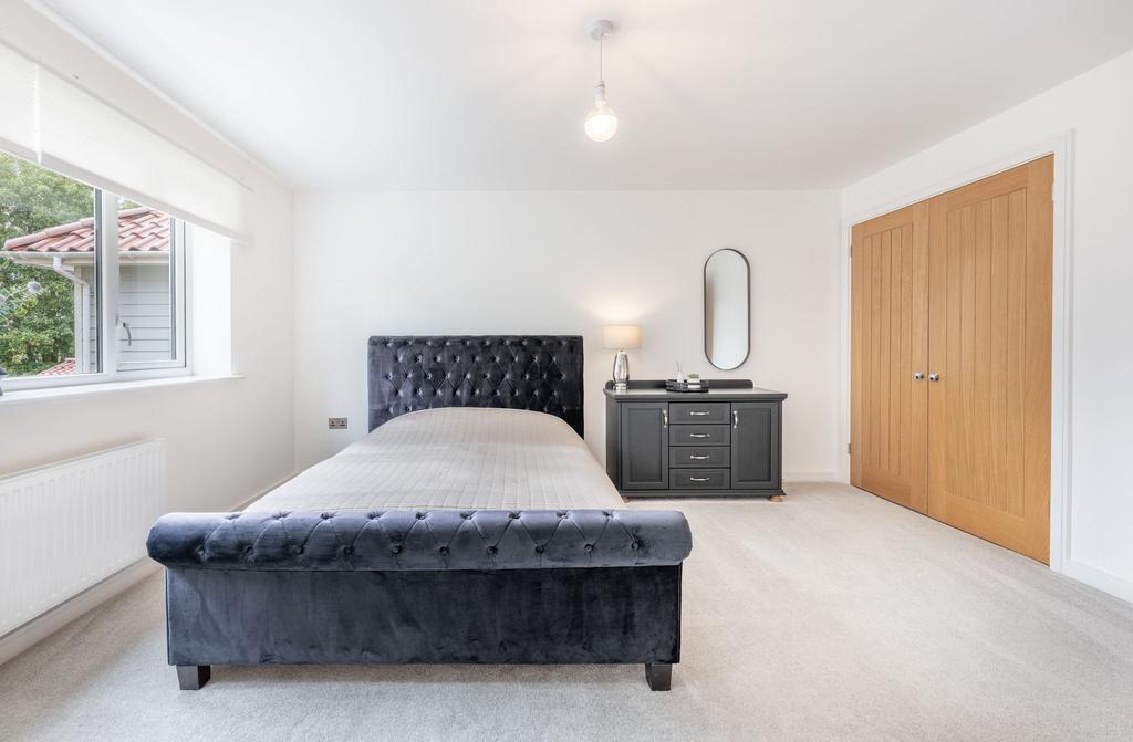 Another generously sized double bedroom, featuring a built-in double wardrobe and a rear-facing window that enjoys views over the garden. A private door leads directly through to the second en-suite, adding both comfort and convenience