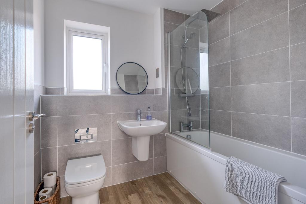 Upstairs, the property benefits from three generously sized bedrooms. The main bedroom, has the benefits from a built in wardrobes, plus an en-suite, fit with a walk in shower, basin and WC. The second and third bedrooms are neutrally decorated, with the third offering an ideal space for a nursery, office, or guest room. The family bathroom completes the first floor, complete with a shower over bath, basin and WC.
