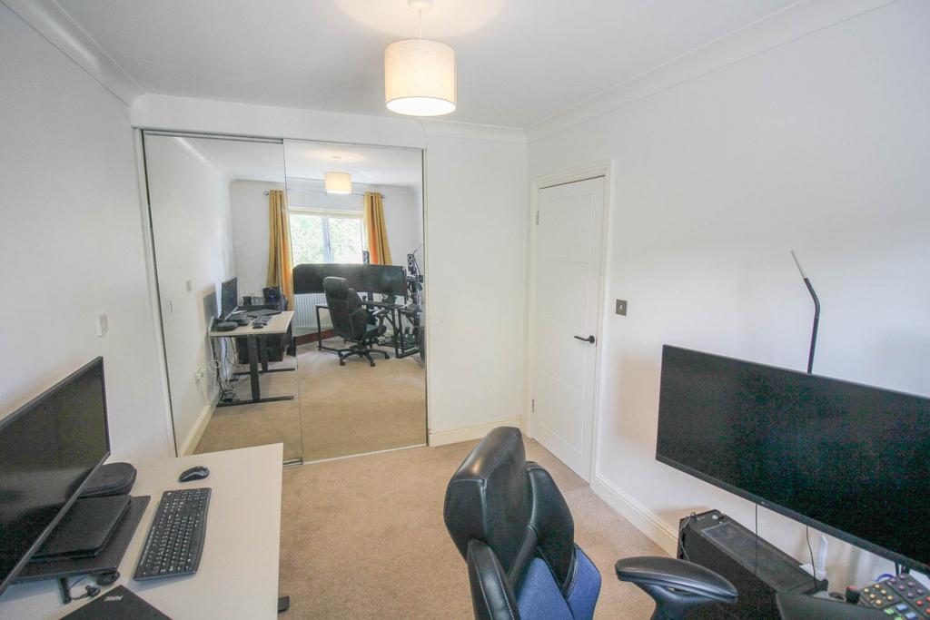 Front aspect uPVc double glazed window. Smooth ceiling with central light and loft access. Built in wardrobe. Over stair storage cupboard. wood flooring. Radiator. door to