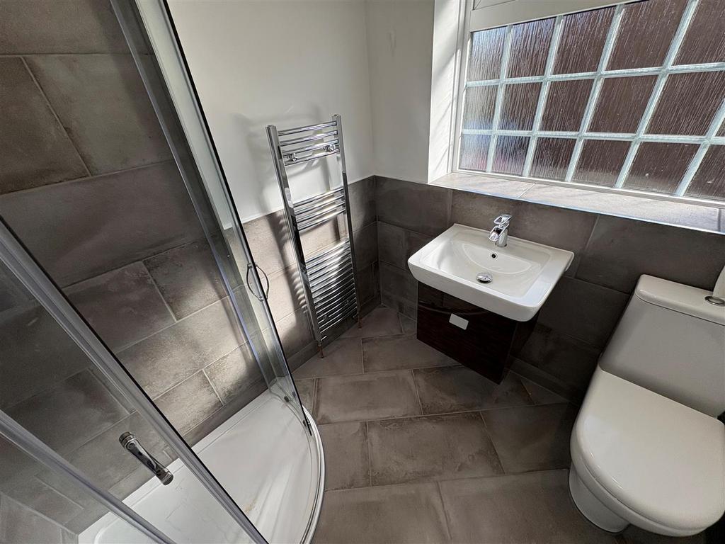 Shower Room - Modern three piece suite comprising shower cubicle, low suite wc, pedestal wash basin, radiator, tiled walls and double glazed window.