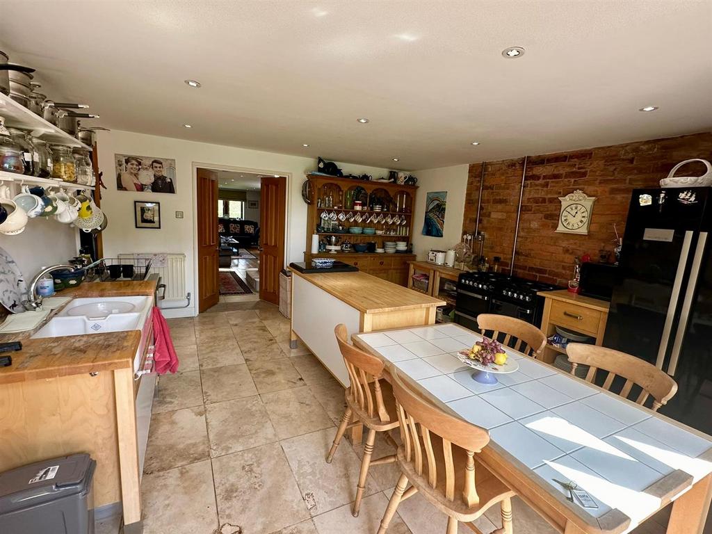 Kitchen/Breakfast Room - Tiled floor, double bowl sink unit with mixer tap over, storage under and solid wood worksurfaces, radiator, space for appliances, exposed brickwork, recessed spotlighting, space for breakfast table, double doors to the rear patio and garden, LARGE UTILITY CUPBOARD (also housing the gas central heating boiler) and door to the