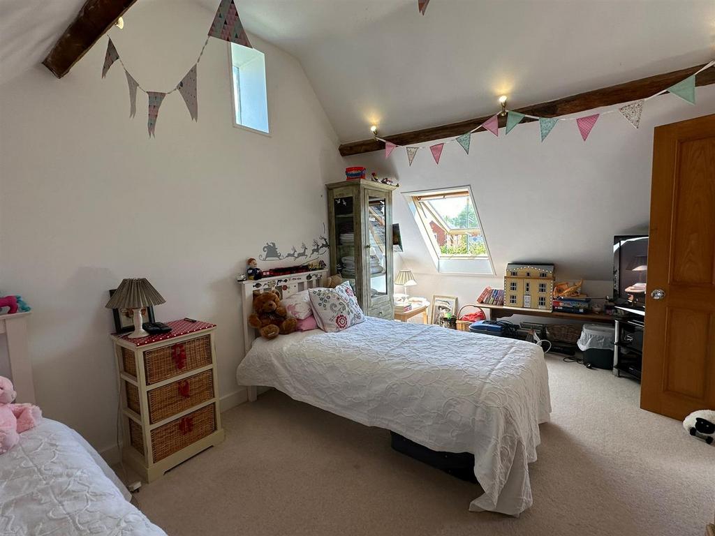 Bedroom 2 - Fitted carpet, radiator, ample space for wardrobes, exposed timbers, high level window and further Velux-style rooflight.