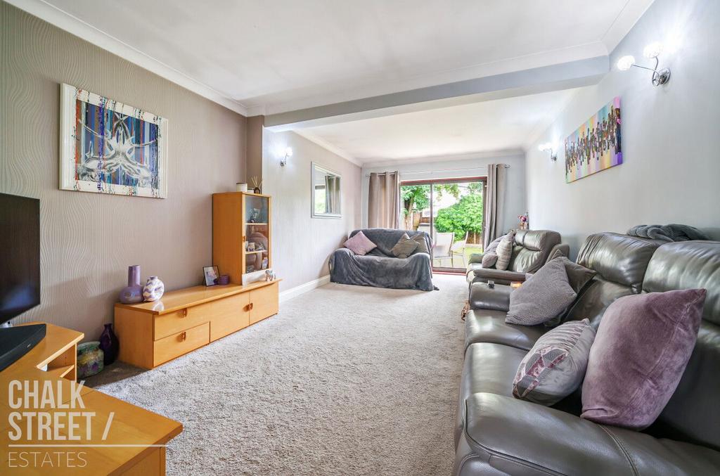 Measuring an impressive 21’ x 12’4, the principal reception room enjoys neutral tones throughout and carpets underfoot. The sliding patio doors open onto the rear garden and flood the room with an abundance of natural light.