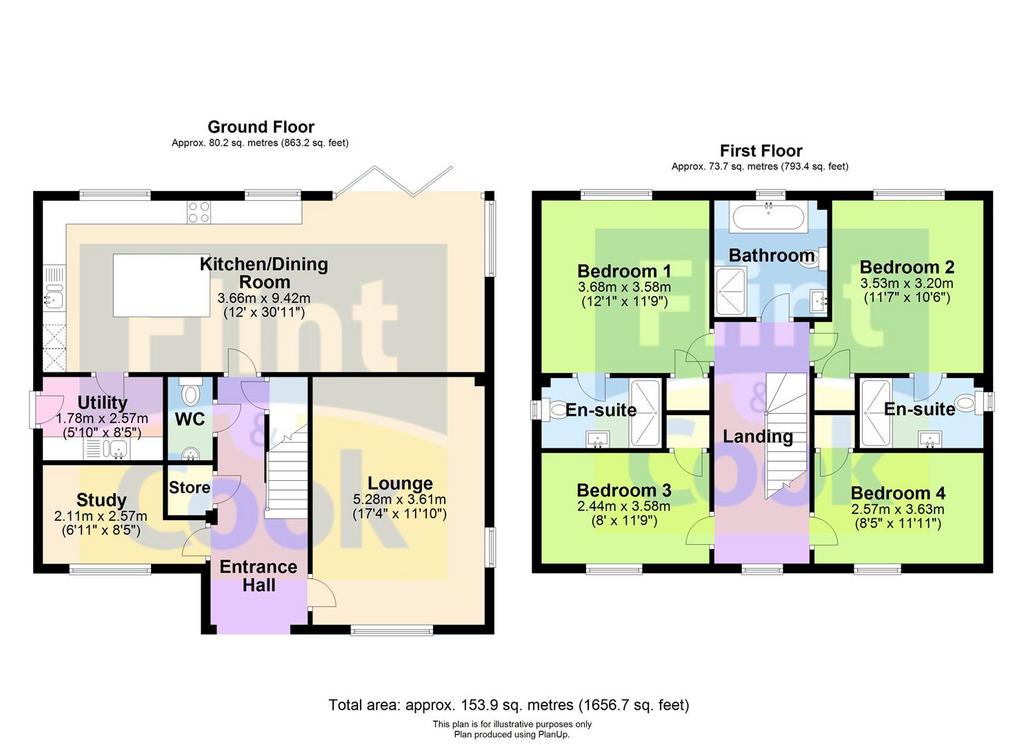 First Floor - Landing with window to the front. Bedroom 1 has a window to the rear, a built in wardrobe and en-suite shower room with window. Bedroom 2 with a window to the rear, built in wardrobe and en-suite shower room with a window to the side. Bedroom 3 has a window to the front and a built in wardrobe. Bedroom 4 has a window to the front and a built in wardrobe.The Bathroom has a a freestanding bath, separate shower cubicle and vanity unit and window to the rear.