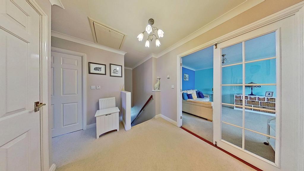 There are two generously sized double bedrooms, with the principal room benefitting from its own en-suite shower room, offering privacy and convenience. The third bedroom is a single, perfectly suited for use as a home office or nursery. A modern family bathroom completes the internal accommodation.