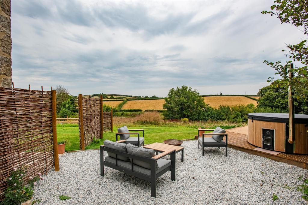 The accommodation is light and airy with it's large open plan kitchen/dining/living room with fitted kitchen and sitting and dining areas. There is a cloakroom/utility room and downstairs shower room and the first floor has timber flooring and exposed roof timbers and offers three bedrooms, with the master comprising a large en suite. Outside there is private parking, a terrace area and also a decking area with a wood fired hot tub. Beyond is a good sized garden and there is a delightful outlook over the surrounding farmland.