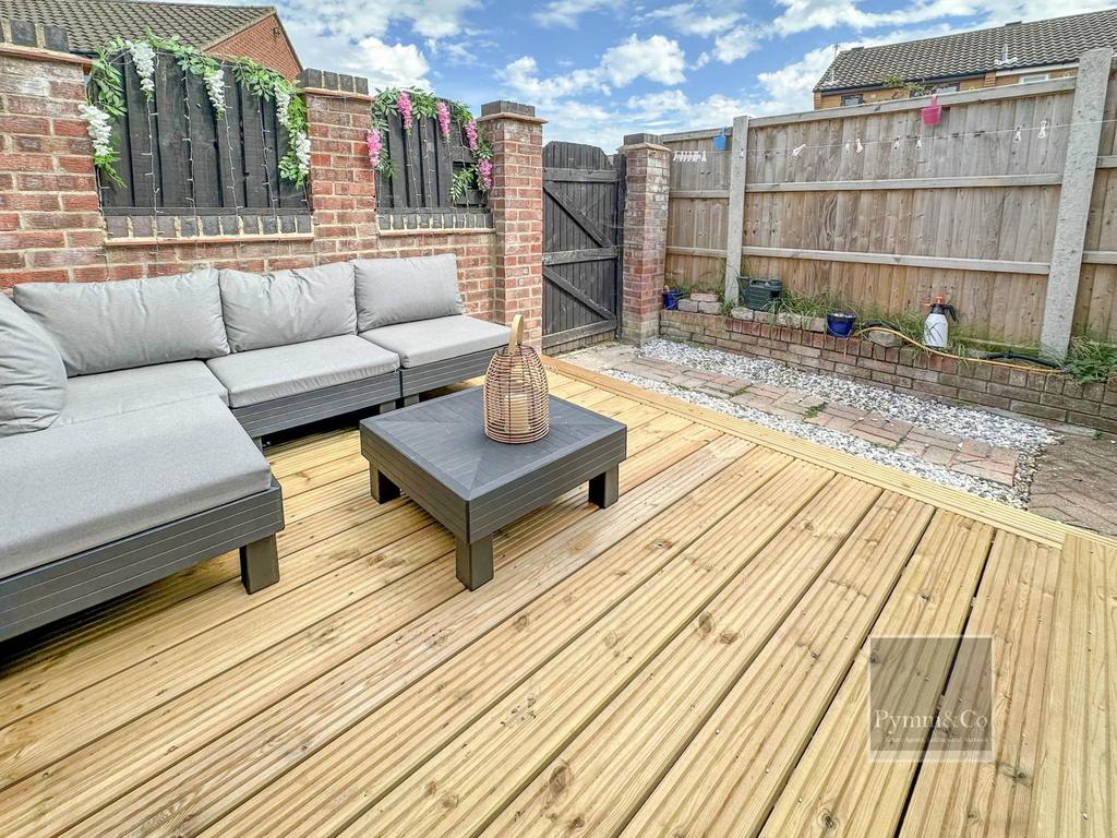 - Enclosed Courtyard Style Rear Garden With Decking And Brick Paved Patio.