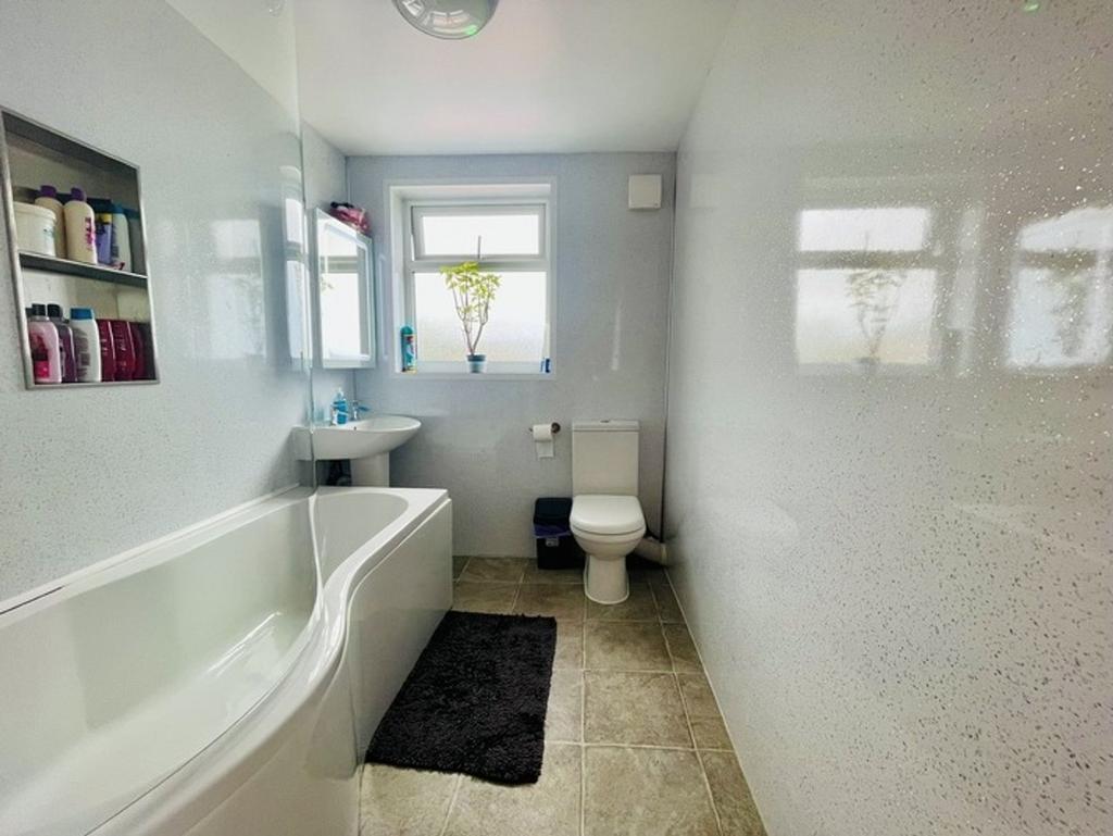 Well-equipped with panelled bath and shower over, wash basin, WC, and tasteful tiling. Light and practical for family use.