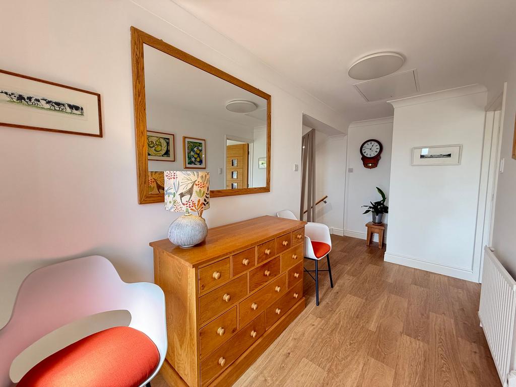 From the Reception Hall stairs rise to the First Floor Landing with small loft access hatch and deep storage cupboard housing the Vaillant gas boiler. BEDROOM 1 with range of fitted wardrobes and drawers and window overlooking the rear garden. EN-SUITE with flush walk in double shower with mains fed shower, wash basin set in vanity unit with cupboards under and tall cupboard to the side, demisting mirror with lights, WC with concealed cistern. Ladder style heated towel rail, Karndean flooring and obscure glazed window. BEDROOMS 2 & 3 are also double rooms to the front enjoying views over the surrounding area towards Dartmoor in the distance. The FAMILY BATHROOM is beautifully appointed with white suite of bath with mains fed shower over, wash basin set in vanity unit and WC with concealed cistern. Demisting mirror with lights, Karndean flooring and obscure glazed window.