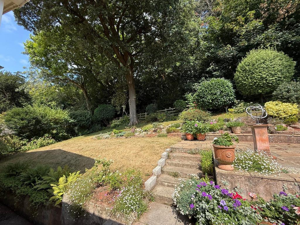 Adjoining the property is a paved terrace with access to a GARDEN ROOM with vaulted glazed roof and windows and French doors to the garden. From the terrace steps rise to an attractive and landscaped tiered garden which backs onto Brunel Woods with further paved terraced and lawned garden, planted with an abundance of mature shrubs and plants. Within the garden is an automatic watering system for pots. To the front is a lawned garden with flower border and steps to the front entrance with patio area enjoying beautiful views over the surrounding area towards Dartmoor. A sloping driveway with parking for approximately six vehicles leads to the DOUBLE GARAGE with electric roller door, workshop area, power, lighting, window and courtesy door to the property.
