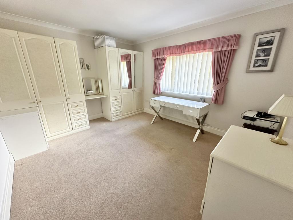 UPVC double glazed window to front aspect, range of fitted wardrobes and radiator.