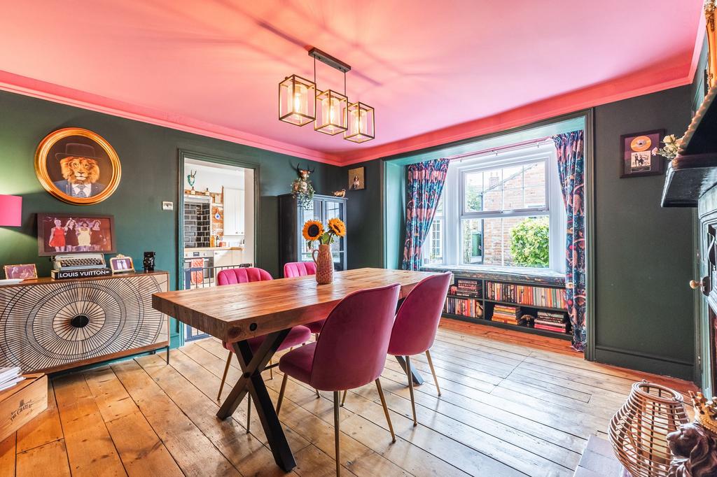 Step inside to an interior rich with warmth and individuality. The traditional quarry-tiled hallway leads to a cosy bay-fronted lounge, where a cast iron fireplace and wood-burning stove create the perfect setting for winter evenings. “It’s our favourite room on cold nights,” say the current owners.