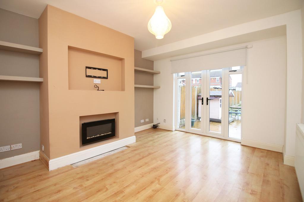 Light, bright and spacious reception room with UPVC French doors to the rear garden. Wall mounted electric fire with media / television.