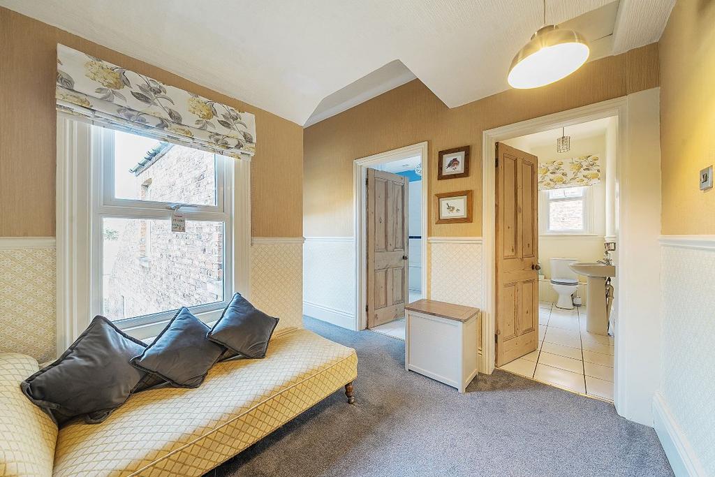 Upstairs on the first floor, you'll find three double bedrooms, including the main suite, which comes with its own en-suite shower and a big bay window that rather insists you stop and admire the outlook with a cup of tea. The house bathroom is kitted out with a clean white suite and shower-over-bath arrangement, with a separate WC nearby, so there's no need for queues in the morning. On the top floor, there are two further doubles, both with their own wash basins, and a smaller single room that works as a nursery, box room or an office for those days when you're hiding from the rest of the household.